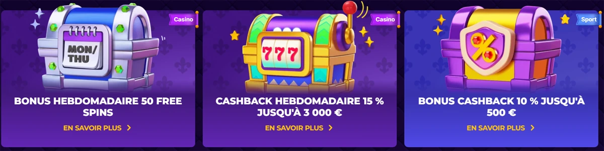 Le service client francophone couvre tous les aspects du jeu. Nos agents traitent les questions relatives aux dépôts, retraits, bonus et problèmes techniques.