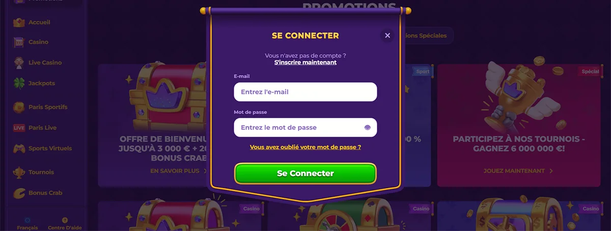 La plateforme vérifie rigoureusement l'âge des utilisateurs. Cette validation garantit que seuls les adultes accèdent aux services de jeu. En cas de problème de connexion, contactez le support client plutôt que de créer un nouveau compte.